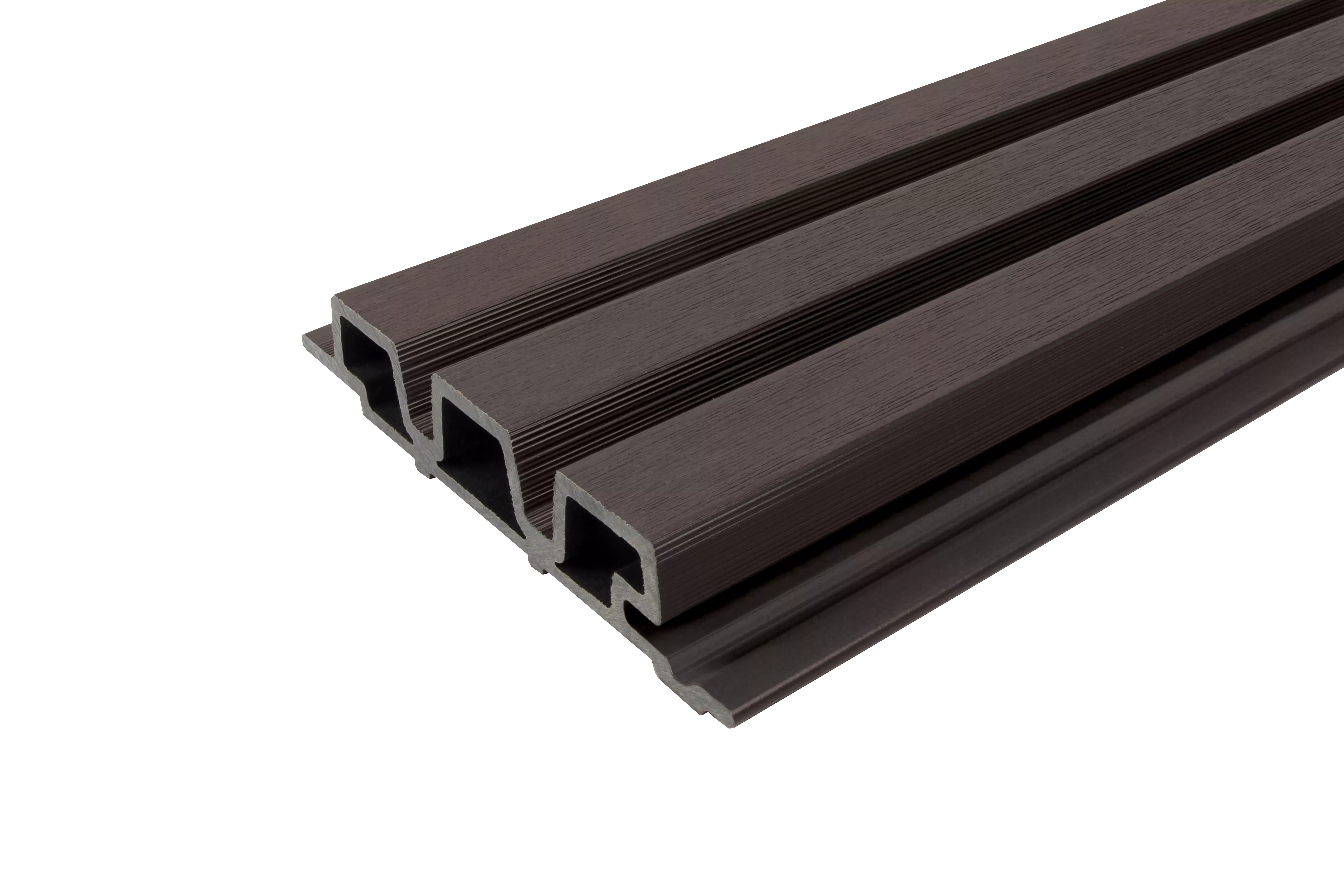Die WEO®-WPC-Fassade kombiniert das warme Aussehen von Holz mit einem trendigen und zeitgemäßen Profil. Das Material, das aus den besten Extrusionstechnologien hervorgeht, ist resistent gegen UV-Strahlen und andere äußere Einflüsse, die die Oberflächen herkömmlicher Fassadenverkleidungen normalerweise beschädigen. Die klaren Linien des Profils mit künstlichem Gitter schaffen einen Rhythmus in den Fassaden und die subtilen und zufälligen Nuancen im Dekor verstärken die realistische Nachahmung eines natürlichen Materials.