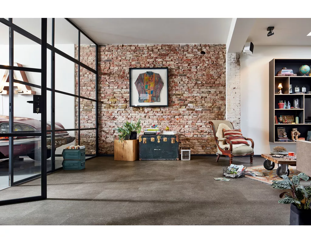 Vinylboden im Bad? Kannste haben! Vinylboden im Fliesenformat? Kriegste direkt mit dazu! Dieser Vinylboden sieht aus wie eine Fliese, bringt aber alle positiven Eigenschaften von Vinyl mit sich: Er ist robust, strapazierfähig und pflegeleicht. // Doch das war noch nicht alles. Speziell dieser Vinylboden ist nicht nur wasserresistent, sondern komplett wasserfest. Das heißt, Du kannst ihn nicht nur in der Küche, sondern auch im Badezimmer problemlos verlegen. Dort ist auch der PE-Träger von Vorteil, mit dem der Boden ausgestattet ist. Was das ist? Es handelt sich um eine dünne Schicht aus Polyethylen (Kunststoffe), die gleich mehrere Funktionen hat: Sie bildet zum einen eine Barriere zwischen dem Untergrund und dem Bodenbelag – letzteren schützt sie also vor aufsteigender Feuchtigkeit, die dem Vinyl schaden könnte. Zum anderen gleicht der PE-Träger Unebenheiten aus und bewahrt den Boden vor Verschleiß. // Du denkst das war's schon? Falsch gedacht! Der Vinylboden ist mit einer integrierten Trittschalldämmung ausgestattet. Du läufst also wie auf Wolken darauf – weich und leise. Das ist sowohl für Dich angenehm als auch für Deine Mitbewohner.