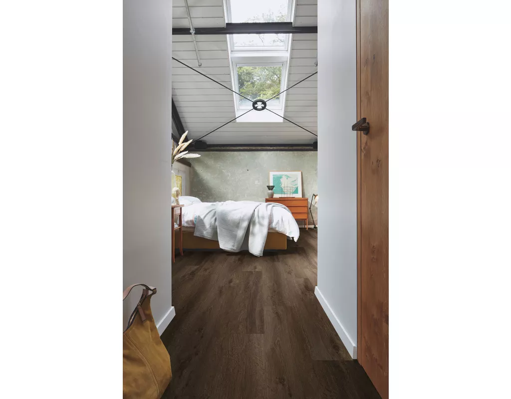 Traditionelle Bodenbeläge wie Laminat oder Parkett sind nichts für Dich? Wie wär's dann mit einem Designboden im Kurzdielenformat? Er ist strapazierfähig, langlebig und pflegeleicht. Deshalb wird er häufig in Wohnzimmern, Schlafzimmern, Küchen, Büros und Einzelhandelsgeschäften verlegt. Dort ist auch die integrierte Trittschalldämmung von Vorteil. // Haste eigentlich schon mal was von einem PE-Träger gehört? Noch nicht? Dann kriegste jetzt mehr Infos. Denn der Designboden ist mit diesem Träger ausgestattet. Es handelt sich dabei um eine dünne Schicht aus Polyethylen (Kunststoffe), die als Trägermaterial dient. Der PE-Träger wird in der Regel zwischen dem Unterboden und dem Bodenbelag platziert und hat mehrere Funktionen: Der PE-Träger bildet zum einen eine Barriere gegen aufsteigende Feuchtigkeit aus dem Untergrund, die dem Boden schaden könnte. Zum anderen gleicht der Träger Unebenheiten aus. Zu guter Letzt schützt er den Designboden vor spitzen Gegenständen und somit vor Verschleiß. // Das Beste kommt zum Schluss: Wie Du siehst, kriegste den Bodenbelag bei uns in ganz verschiedenen Dekoren, Farben und Mustern. Du kannst Deiner Kreativität also freien Lauf lassen! So oder so – Designboden macht Dein Zuhause zu etwas Einzigartigem. Dafür sorgt auch das Kurzdielenformat. Denn es erzeugt ein lebendiges Erscheinungsbild in den Räumen und macht sie visuell interessanter und dynamischer.