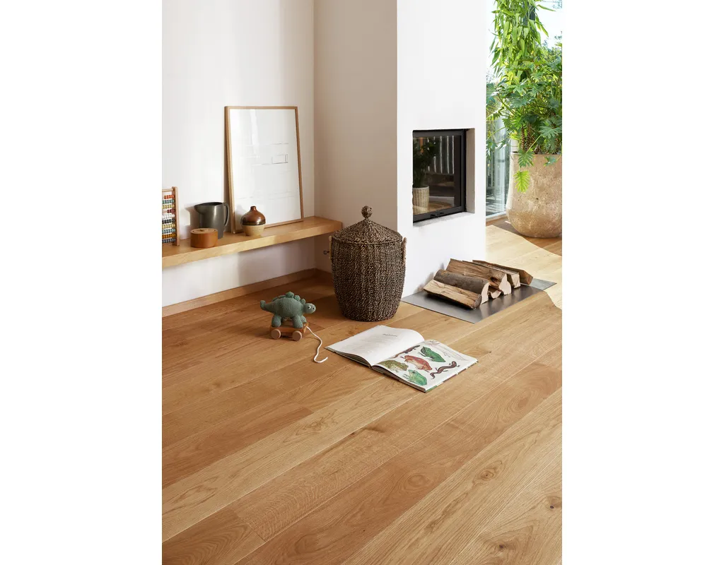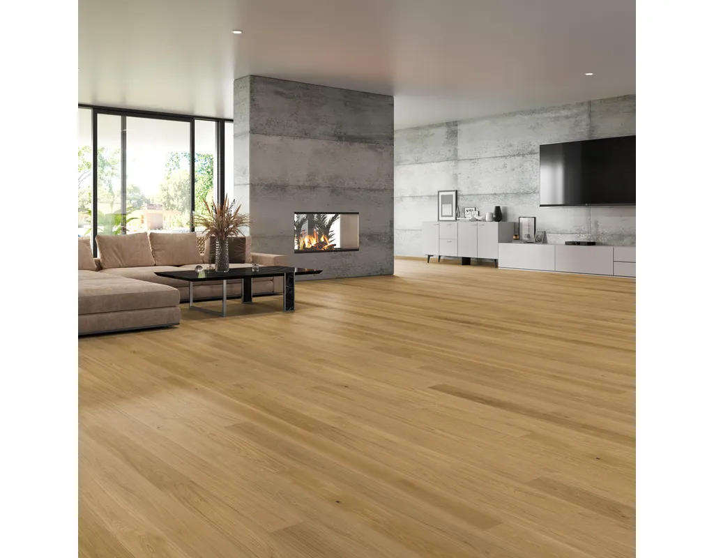 Entdecke unsere erstklassige Fertigparkett Landhausdiele – der perfekte Bodenbelag für ein rustikales und gemütliches Ambiente. Mit dieser hochwertigen Wahl holste Dir den Charme und die Natürlichkeit von echtem Holz direkt in Dein Zuhause. Die Landhausdielen bestechen durch ihre authentische Optik und ihre strapazierfähigen Eigenschaften. Denn sie sind mit einer robusten Nutzschicht aus qualitativem Echtholz ausgestattet, die den Bodenbelag langlebig macht. Zusammengefasst: Er vereint die zeitlose Schönheit von Holz mit der praktischen Funktionalität eines Fertigparketts. // Eine Sache können wir Dir noch zur Oberfläche erzählen: Sie ist leicht zu reinigen. Eine regelmäßige Reinigung mit dem Staubsauger oder einem feuchten Tuch und passendem Parkettreiniger genügt. // Doch was ist eigentlich eine Landhausdiele? Es ist einer der Klassiker unter den Parkettformaten. Denn darunter fallen Parkettdielen, die zum einen eine Länge von circa zwei Metern haben und zum anderen eine ganz charakteristische Optik der Oberfläche. Im Unterschied zum Schiffsboden Parkett besteht die Edelholz-Nutzschicht nämlich nicht aus kleinen zusammengesetzten Parkettstücken, sondern aus einem zusammenhängenden Stück des Holzes, das aus der Mitte eines Stammes gesägt wird.