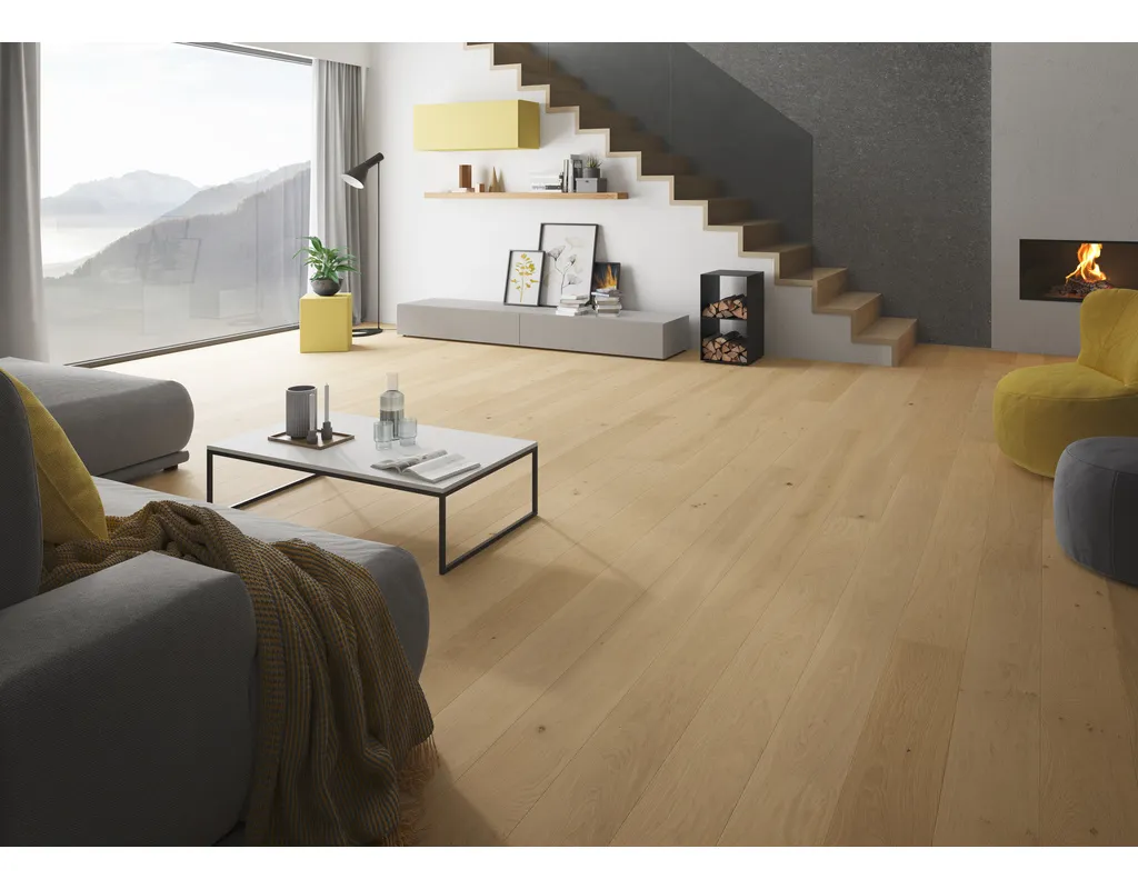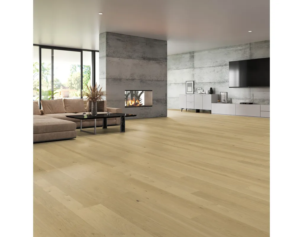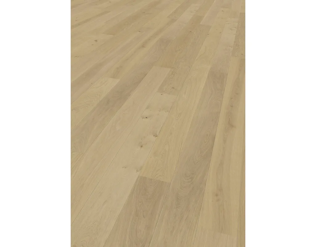 Entdecke unsere erstklassige Fertigparkett Landhausdiele – der perfekte Bodenbelag für ein rustikales und gemütliches Ambiente. Mit dieser hochwertigen Wahl holste Dir den Charme und die Natürlichkeit von echtem Holz direkt in Dein Zuhause. Die Landhausdielen bestechen durch ihre authentische Optik und ihre strapazierfähigen Eigenschaften. Denn sie sind mit einer robusten Nutzschicht aus qualitativem Echtholz ausgestattet, die den Bodenbelag langlebig macht. Zusammengefasst: Er vereint die zeitlose Schönheit von Holz mit der praktischen Funktionalität eines Fertigparketts. // Eine Sache können wir Dir noch zur Oberfläche erzählen: Sie ist leicht zu reinigen. Eine regelmäßige Reinigung mit dem Staubsauger oder einem feuchten Tuch und passendem Parkettreiniger genügt. // Doch was ist eigentlich eine Landhausdiele? Es ist einer der Klassiker unter den Parkettformaten. Denn darunter fallen Parkettdielen, die zum einen eine Länge von circa zwei Metern haben und zum anderen eine ganz charakteristische Optik der Oberfläche. Im Unterschied zum Schiffsboden Parkett besteht die Edelholz-Nutzschicht nämlich nicht aus kleinen zusammengesetzten Parkettstücken, sondern aus einem zusammenhängenden Stück des Holzes, das aus der Mitte eines Stammes gesägt wird.