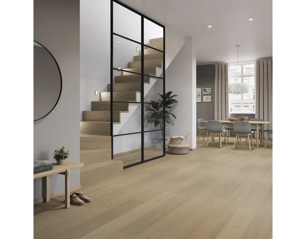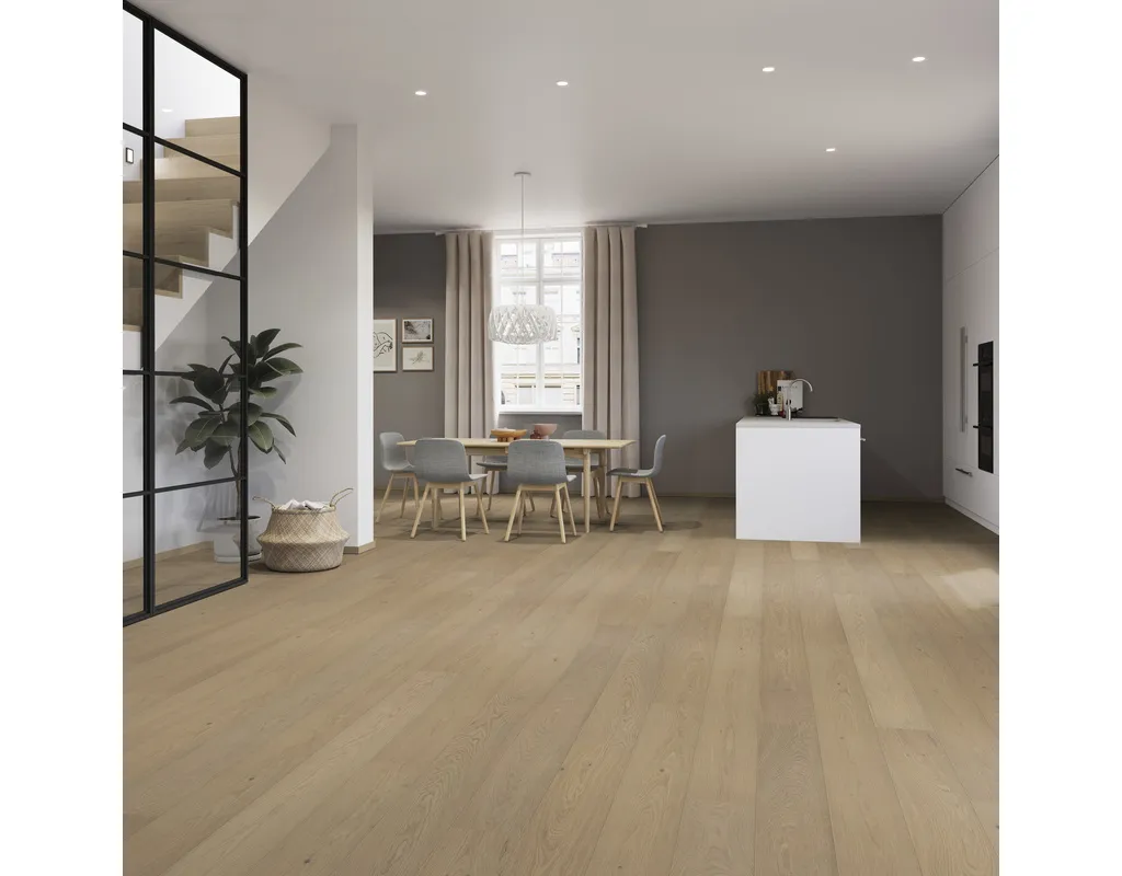 Entdecke unsere erstklassige Fertigparkett Landhausdiele – der perfekte Bodenbelag für ein rustikales und gemütliches Ambiente. Mit dieser hochwertigen Wahl holste Dir den Charme und die Natürlichkeit von echtem Holz direkt in Dein Zuhause. Die Landhausdielen bestechen durch ihre authentische Optik und ihre strapazierfähigen Eigenschaften. Denn sie sind mit einer robusten Nutzschicht aus qualitativem Echtholz ausgestattet, die den Bodenbelag langlebig macht. Zusammengefasst: Er vereint die zeitlose Schönheit von Holz mit der praktischen Funktionalität eines Fertigparketts. // Eine Sache können wir Dir noch zur Oberfläche erzählen: Sie ist leicht zu reinigen. Eine regelmäßige Reinigung mit dem Staubsauger oder einem feuchten Tuch und passendem Parkettreiniger genügt. // Doch was ist eigentlich eine Landhausdiele? Es ist einer der Klassiker unter den Parkettformaten. Denn darunter fallen Parkettdielen, die zum einen eine Länge von circa zwei Metern haben und zum anderen eine ganz charakteristische Optik der Oberfläche. Im Unterschied zum Schiffsboden Parkett besteht die Edelholz-Nutzschicht nämlich nicht aus kleinen zusammengesetzten Parkettstücken, sondern aus einem zusammenhängenden Stück des Holzes, das aus der Mitte eines Stammes gesägt wird.