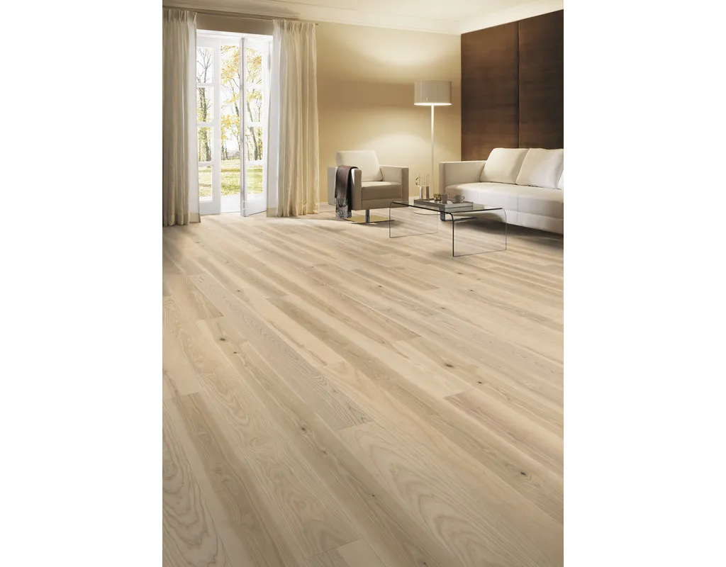 Entdecke unsere erstklassige Fertigparkett Landhausdiele – der perfekte Bodenbelag für ein rustikales und gemütliches Ambiente. Mit dieser hochwertigen Wahl holste Dir den Charme und die Natürlichkeit von echtem Holz direkt in Dein Zuhause. Die Landhausdielen bestechen durch ihre authentische Optik und ihre strapazierfähigen Eigenschaften. Denn sie sind mit einer robusten Nutzschicht aus qualitativem Echtholz ausgestattet, die den Bodenbelag langlebig macht. Zusammengefasst: Er vereint die zeitlose Schönheit von Holz mit der praktischen Funktionalität eines Fertigparketts. // Eine Sache können wir Dir noch zur Oberfläche erzählen: Sie ist leicht zu reinigen. Eine regelmäßige Reinigung mit dem Staubsauger oder einem feuchten Tuch und passendem Parkettreiniger genügt. // Doch was ist eigentlich eine Landhausdiele? Es ist einer der Klassiker unter den Parkettformaten. Denn darunter fallen Parkettdielen, die zum einen eine Länge von circa zwei Metern haben und zum anderen eine ganz charakteristische Optik der Oberfläche. Im Unterschied zum Schiffsboden Parkett besteht die Edelholz-Nutzschicht nämlich nicht aus kleinen zusammengesetzten Parkettstücken, sondern aus einem zusammenhängenden Stück des Holzes, das aus der Mitte eines Stammes gesägt wird.