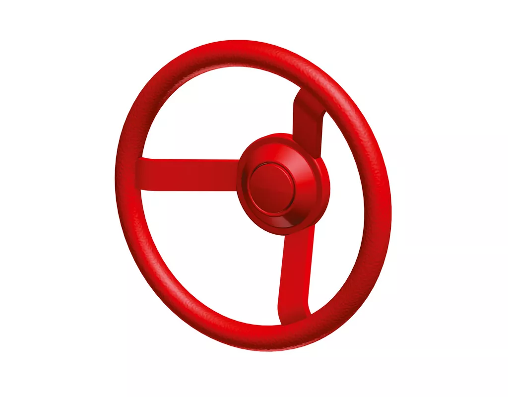 Das drehbare Lenkrad ist aus robustem Kunststoff.