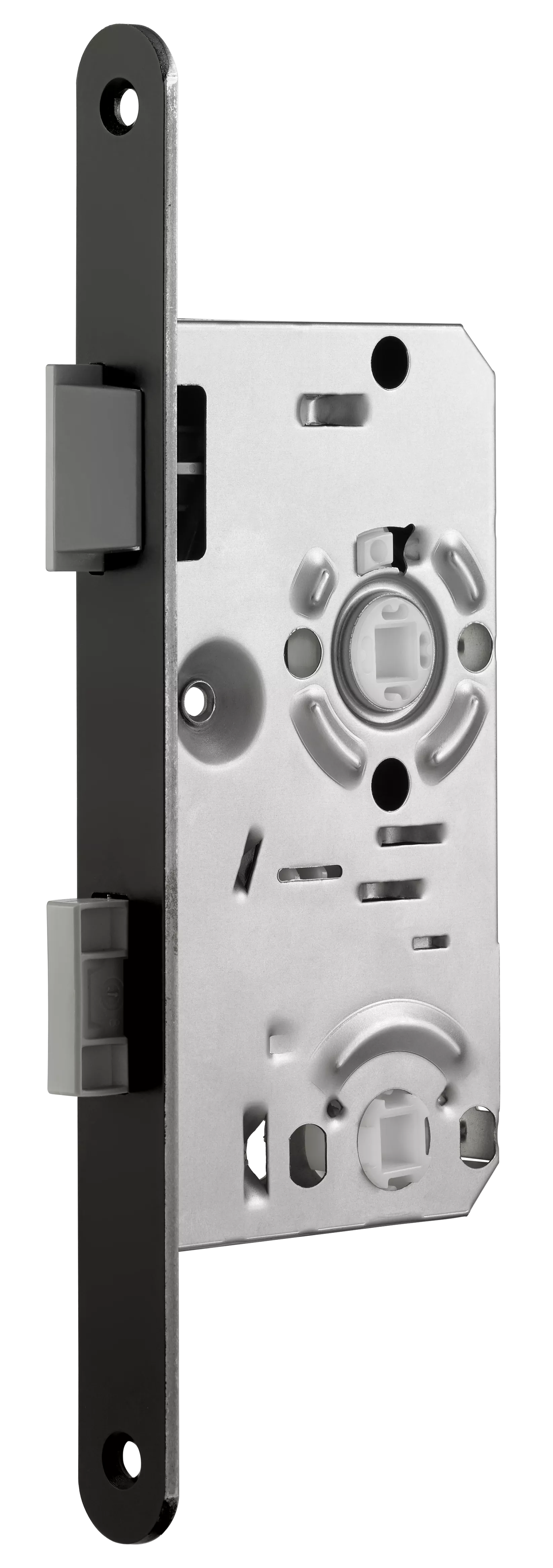Einsteckschloss WC-Schloss, 55D, 20x235, Flüsterfalle Stulp schwarz-matt ähnlich RAL 9005 DR